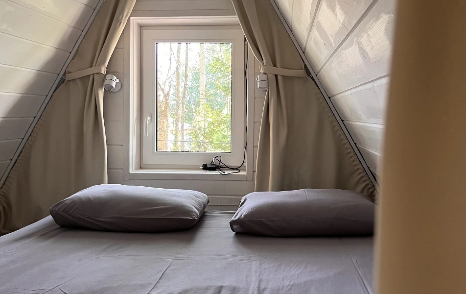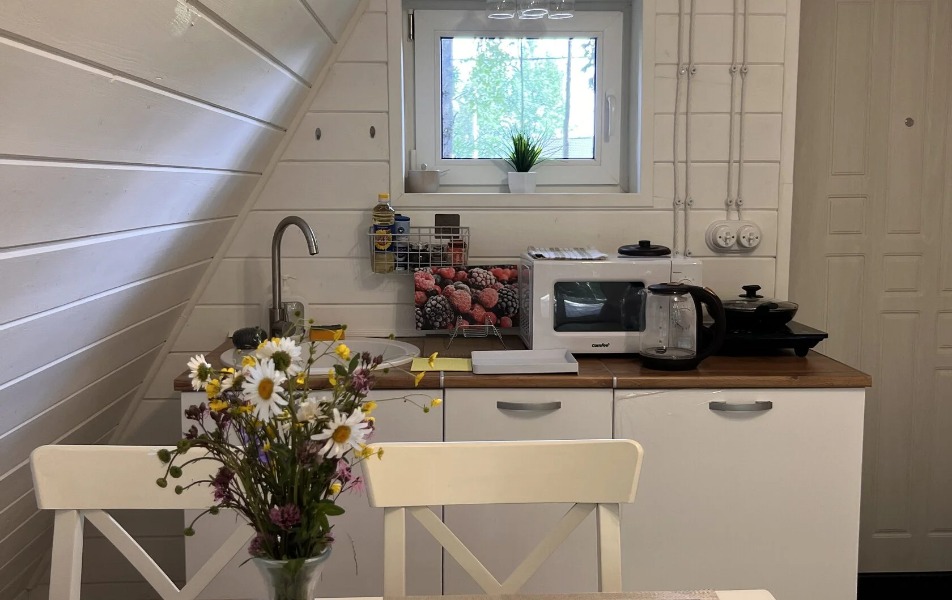 двуспальный диван, двуспальный матрац под крышей, с/у, душ, мини-кухня